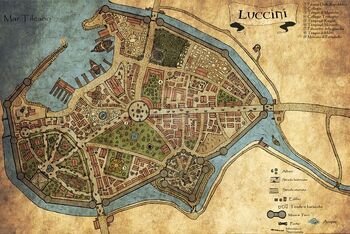 Księstwo Luccini jest najstarszym miastem w Tilei, założony na ruinach starożytnego elfiego miasta w roku 1 przez legendarnych bliźniaków, Lucan i Luccina, króla i królowej plemienia koczowniczych pasterzy, gdzie sławny Elf zbudował Akropol i tam: swój pałac na szczycie. Od czasu założenia miasta bliźnięta były uważane za boskie, co sprawia, że mieszkańcy Luccini są jeszcze bardziej wyniośli i ważniejsi niż większość Tilean, ponieważ uważają się za krewnych bogów. Nie trzeba dodawać, że kult bliźniaków nie jest rozpowszechniony poza terytorium Luccini.