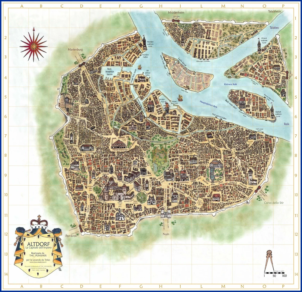 Nikt nie wie dokładnie, skąd pochodzą Skaveny, z wyjątkiem tego, że jest ich wiele na obrzeżach Zniszczonych Bagien. Wysoką cenę nakłada się na ich głowy, martwe lub żywe. Od czasów czerwonej ospy książęta Miragliano odbudowali duże części starego miasta. Miasto nie było pierwotnie kolonią elfów i rozwijało się w chaotyczny sposób przez wiele stuleci. Książęta stopniowo narzucili miastu uporządkowany plan. Zostało to pierwotnie opracowane przez wielkiego Leonarda da Miragliano, któremu zlecił to zadanie książę Cosimo. Od tego czasu realizacja planu zajęła wiele stuleci. Każdy kolejny książę i wiele rodzin kupieckich usiłowało upiększyć miasto na różne sposoby.