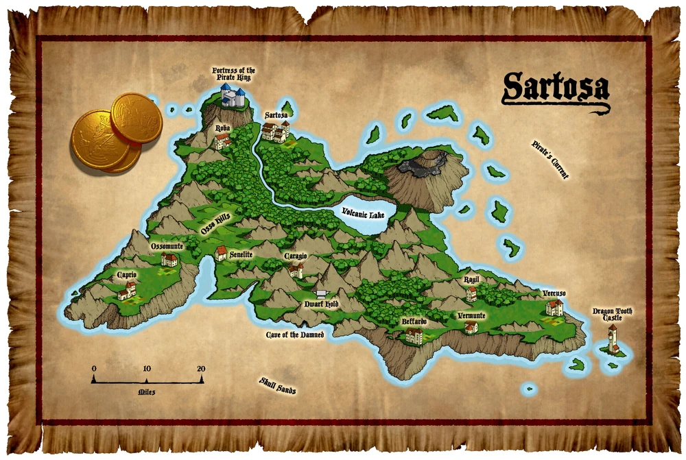 Pirackie miasto-państwo, położone na wyspie na Morzu Tileańskim. Władzę sprawuje w nim Król Piratów (obecnym jest Natalia Le Bliss), wybierany corocznie przez kapitanów przebywających wówczas w porcie statków. Otoczone jest solidnymi murami i chronione od ataków ze strony morza przez wielkie machiny wojenne. Pomiędzy Sartosą a kontynentem płynie zabójczy prąd, zwany Pirackim Prądem, a który uniemożliwia lądowanie na północy wyspy. Na południu okalają ja Piaski Czaszki.